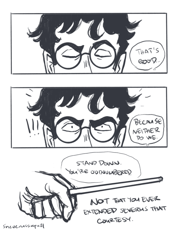 Sneverussape is in her early 30’s and is currently living in South-East Asia. She works in international development. The books brought SneverusSape into the Snapedom after reading the series in the span of a week. She is a self-taught digital artist and began drawing for the Snapedom during the pandemic. Her artwork is discussed in Episode 10.